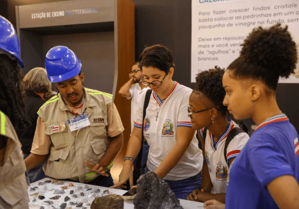 Alunos do Colégio Pedro Paulo Marques e Marques, de São Cristóvão, e do Centro Estadual de Educação Profissional Empreende Bahia, da Avenida Jequitaia, participaram da exposição na tarde de terça-feira (28). Eles se juntaram a outros 400 estudantes que, até sexta-feira (30), vivenciam uma jornada de aprendizado no espaço interativo Mineramundo — uma atração que mostra como a Bahia vem se destacando entre os maiores polos minerais do país.