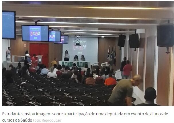 O Pleno.News recebeu a denúncia de um estudante que foi para a aula e, chegando ao campus, presenciou um evento político com a participação da deputada federal Alice Portugal (PCdoB-BA), candidata à reeleição.