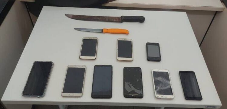 O comandante da unidade, major Éverton Monteiro, informou que havia uma viatura próxima e com o auxílio do rastreamento de um dos aparelhos telefônicos foi possível chegar aos criminosos. Ao perceberem a aproximação dos agentes, os bandidos fugiram e deixaram uma mochila com os materiais roubados, além de duas facas para trás. Segundo o oficial, a ocorrência foi registrada na 23ª Delegacia Territorial (DT).