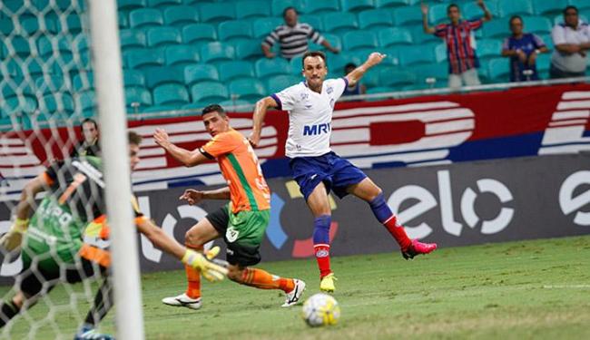 Com a mesma estratA�gia que usou contra o AvaA� no A?ltimo sA?bado, adiantando a marcaA�A?o e reduzindo osA� espaA�os estre defesa, meio-campo e ataque, o Bahia repetiu contra o AmA�rica-MG o domA�nio absoluto que teve sobre o time catarinense na estreia da SA�rie B. Com Luizinho no lugar de Danilo Pires, o Tricolor foi atA� mais ofensivo, mas voltou perder muitos gols e dessa vez nA?o saiu de campo nos primeiros 45 minutos com a vantagem no placar.
