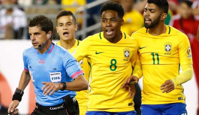 BRASIL – Alisson; Daniel Alves, Miranda, Gil e Felipe Luis; Elias, Renato Augusto, Willian, Lucas Lima e Phillippe Coutinho; Gabriel (Hulk). TA�cnico: Dunga.