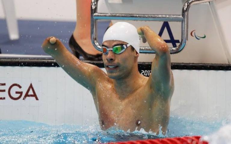 Nascido com mA? formaA�A?o congA?nita dos membros superiores e da perna direita, Daniel descobriu a nataA�A?o aos 16 anos. O atleta brasileiro soma ainda dez medalhas de ouro, quatro de prata e uma de bronze conquistadas nas ediA�A�es de Pequim 2008 e Londres 2012.