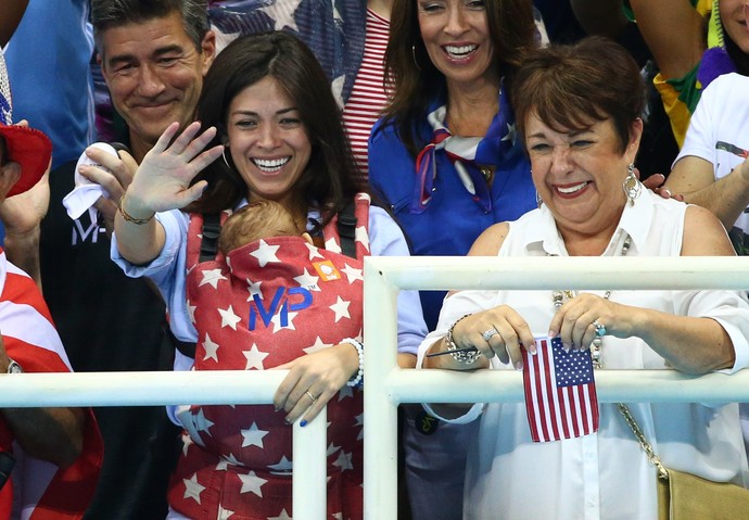 Se dentro da piscina, Michael Phelps teve uma estreia de gala na Rio 2016, com mais um ouro conquistado com o revezamento 4x100m livre dos Estados Unidos, fora dela, quem chamou a atenA�A?o mesmo foi o pequeno Boomer. Com apenas trA?s meses de idade, o bebA?, naturalmente, nA?o resistiu A� sessA?o coruja das finais da nataA�A?o (com encerramento apA?s a meia-noite) e jA? estava dormindo profundamente quando o pai subiu ao topo do pA?dio olA�mpico pela 19A? vez. Mas no colo da mA?e, a modelo Nicole Johnson, acabou se transformando em sensaA�A?o e foi bastante tietado pelo pA?blico brasileiro.