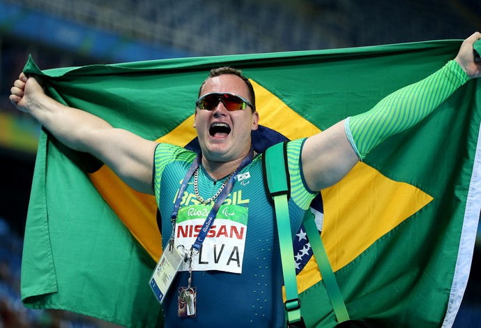 O apelido de Gigante nunca caiu tA?o bem para Alessandro da Silva como nesta segunda-feira. Com 1,90m e 126kg, o paulista de 32 anos sobrou para ser o melhor da prova do lanA�amento do disco da classe F11 da ParalimpA�ada do Rio de Janeiro. Com uma marca bem acima dos demais concorrentes no EngenhA?o, com 43,06m, assegurou a medalha de ouro e o novo recorde paralA�mpico. A medalha de prata ficou com o italiano Oney Tapia, com 40,89m. O espanhol David Casinos Sierra fechou o pA?dio com 38,58m.