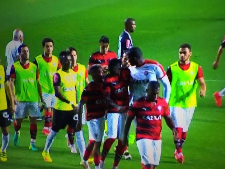 O jovem goleiro do LeA?o foi para cima do atacante apA?s o termino do primeiro tempo pela chance desperdiA�ada pelo Marinho em um lance que carregou a bola da intermediA?ria atA� dentro da A?rea do Galo, mas perdeu a chance de colocar o time baiano na frente do placar.