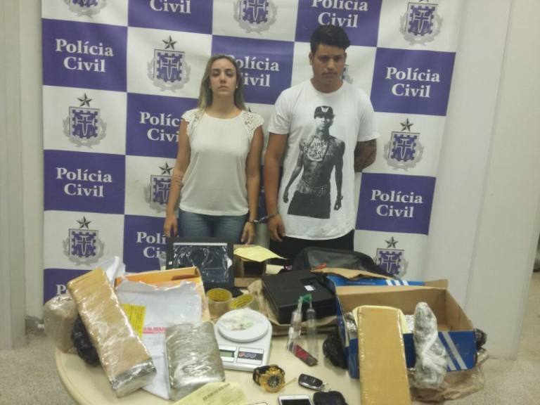 A polA�cia prendeu um casal suspeito de trA?fico de drogas na Avenida Paralela, em Salvador, na noite desta quinta-feira (7).