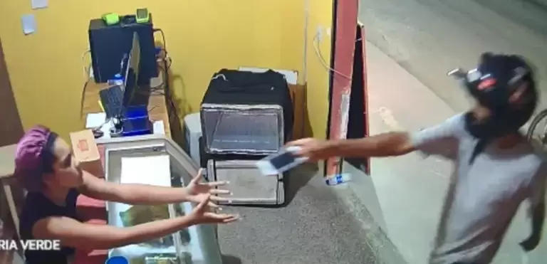 Assalto em pizzaria; bandido devolve celular após apelo da atendente: ‘Eu estou pagando, por favor’