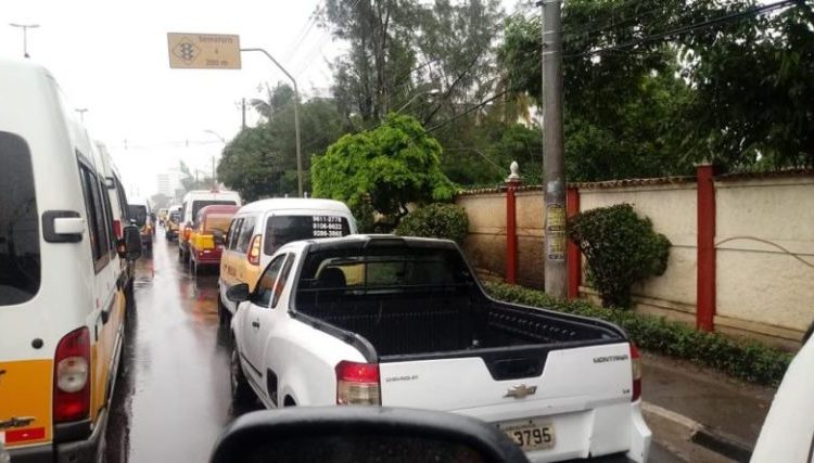 Em apoio aos caminhoneiros, profissionais do transporte escolar protestam em Lauro de Freitas