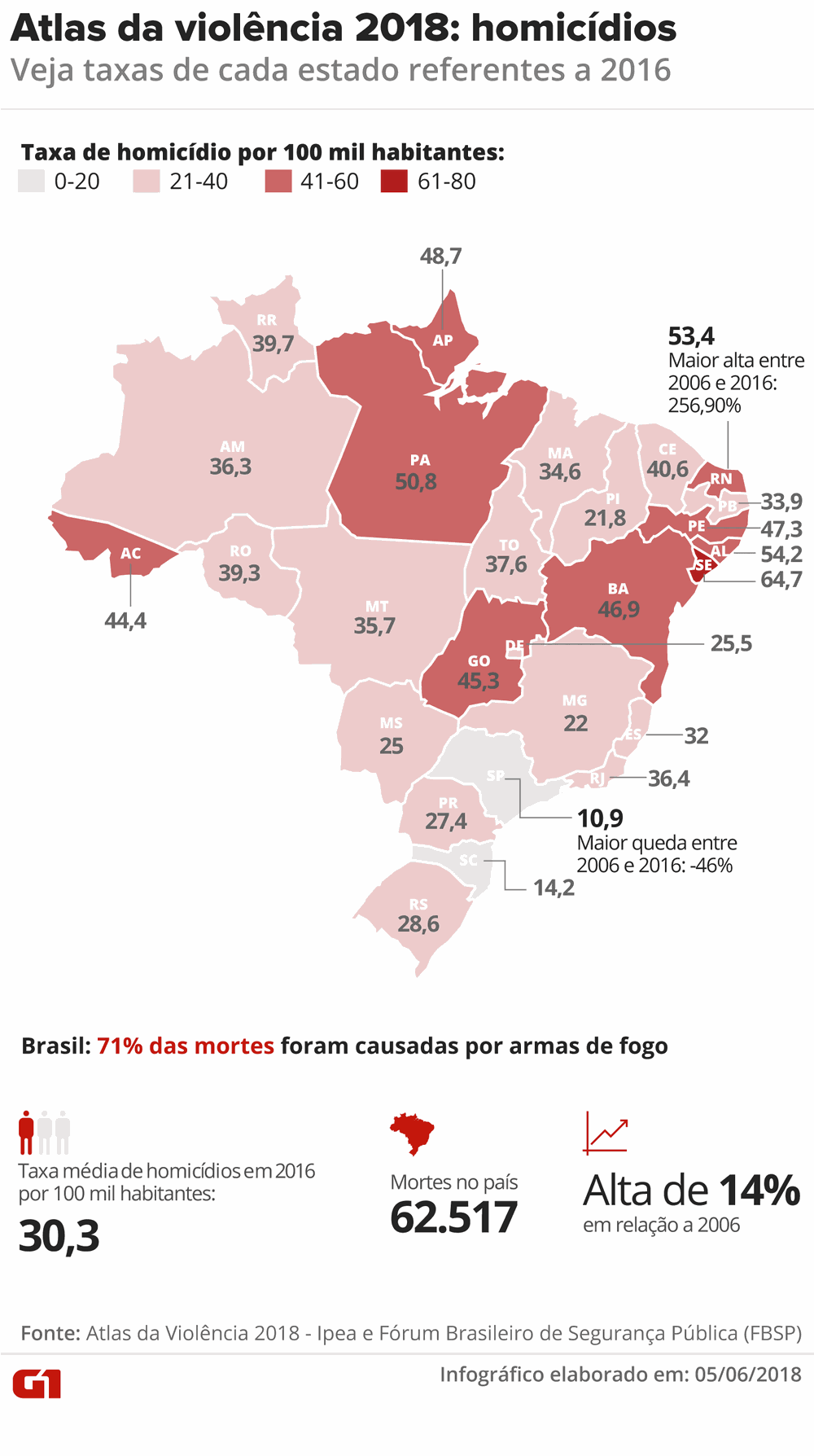De acordo com o levantamento do Ipea e do FA?rum Brasileiro de SeguranA�a PA?blica (FBSP), a Bahia lidera nesse tipo de morte desde 2009. Em 2008, quem liderava era o Rio de Janeiro. O nA?mero tambA�m aumentou quando comparado com o registrado em 2015. Foi uma taxa de 19,6%.