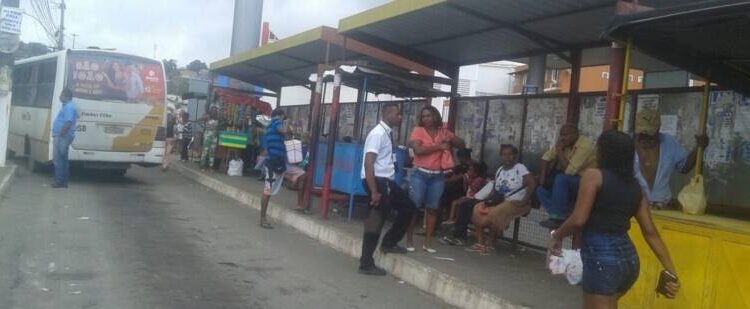 Quatro homens armados fizeram um arrastão em um ponto de ônibus próximo a uma base da Polícia Militar no município de Simões Filho.