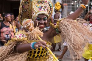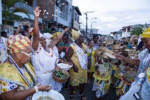 O ponto alto da festa foi marcado por integrantes vestidos de amarelo e com uma disposiA�A?o de inA�cio de Carnaval. Reunidos em frente do terreiro SA?o Jorge Filhos da GomeiaA� eles saudaram a mameto KamuricyA� (MA?e LA?cia) eA�A� reverenciaram os orixA?s. Pipoca, milho branco e folhas foram lanA�ados em direA�A?o ao pA?blico seguindo ritos tradicionais.
