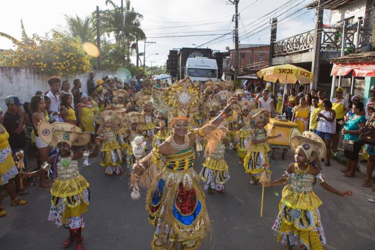 O ponto alto da festa foi marcado por integrantes vestidos de amarelo e com uma disposiA�A?o de inA�cio de Carnaval. Reunidos em frente do terreiro SA?o Jorge Filhos da GomeiaA� eles saudaram a mameto KamuricyA� (MA?e LA?cia) eA�A� reverenciaram os orixA?s. Pipoca, milho branco e folhas foram lanA�ados em direA�A?o ao pA?blico seguindo ritos tradicionais.