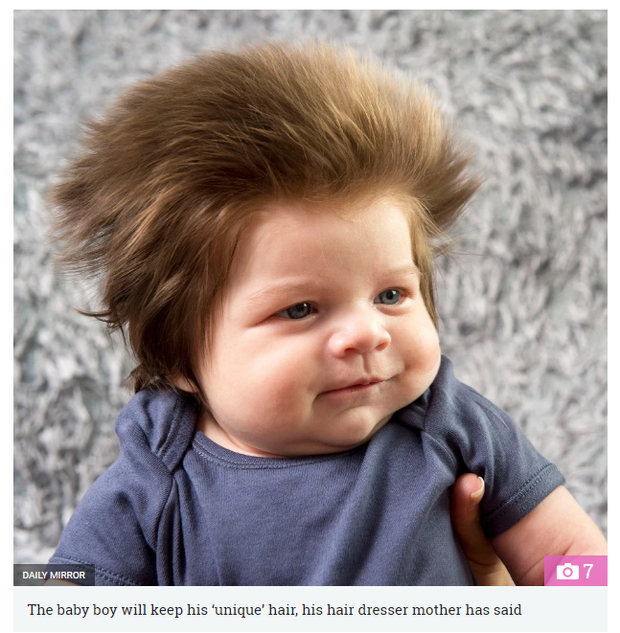 Ele tem apenas 2 meses de idade, mas jA? estA? fazendo sucesso por onde passa e na internet. O motivo? A cabeleira de responsa de Junior Cox-Noon. A mA?e do pequeno, Chelsea Noon, 32 anos, afirmou que nA?o consegue nem ir mais ao mercado sem ser parada por pessoas admiradas com a quantidade de cabelo do filho caA�ula.
