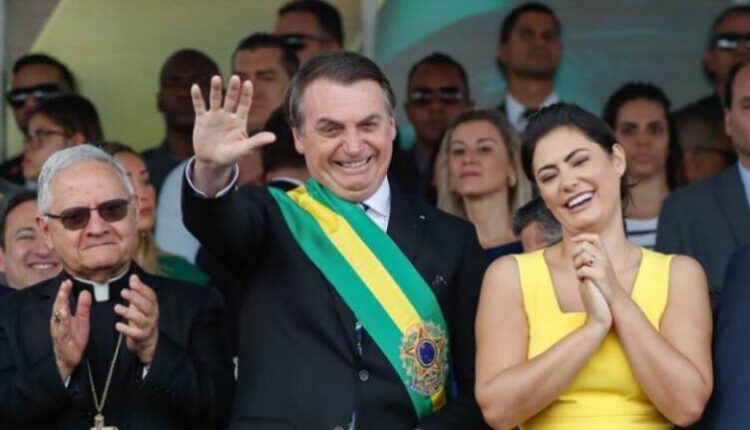 Cerca de 20 minutos antes do início da cerimônia, às 9h40, a primeira-dama Michelle Bolsonaro também cumprimentou o público que estava no alambrado. Ela tirou selfies com apoiadores e permaneceu cerca de cinco minutos próxima às grades.