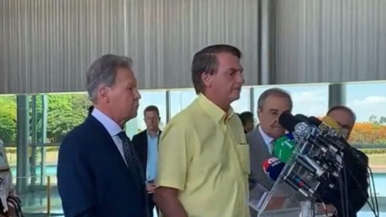 O presidente Jair Bolsonaro faz pronunciamento para esclarecer o ocorrido com seu ex-ministro Tarcísio de Freitas que está concorrendo ao governo de SP.