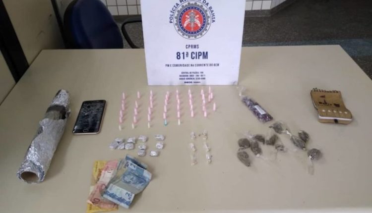 Em seguida, os marginais correram e um homem foi alcançado pelos militares. Com o bandido, que é morador do Caji, foram apreendidos 48 pinos cocaína;, 11 envelopes pequenos de maconha, 10 sacos de maconha, 6 pedras de crack, uma caderneta com anotações da criminalidade, 36 reais em espécie, um celular, um rolo de papel laminado e um saco com cápsulas de conteúdo não identificado. A ocorrência foi registrada na 27ª Delegacia Territorial, em Itinga.