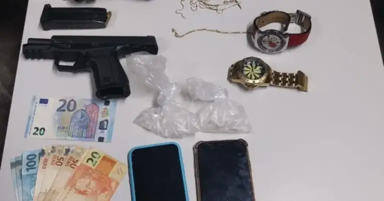 Durante a operação, as autoridades apreenderam uma pistola calibre 9mm, um revólver calibre 38, carregador, munições, 140 pinos de cocaína, celulares, além de 20 euros e 540 reais em dinheiro. A ação policial representa mais um golpe contra a atuação criminosa na região, evidenciando o enfrentamento constante das forças de segurança contra o crime organizado.