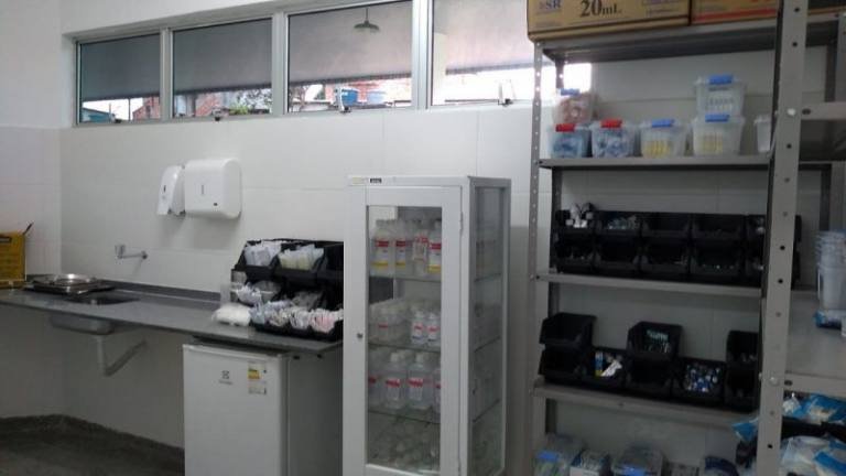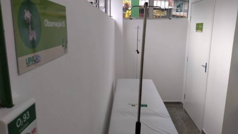 A UPA PediA?trica A� composta por dois pediatras 24h por dia e equipada com ECG, Raio X, laboratA?rio, sala de gesso, sala de medicamentos, sala de nebulizaA�A?o, sala de sutura, sala vermelha, cinco leitos de observaA�A?o, um leito de isolamento e um leito de reanimaA�A?o.