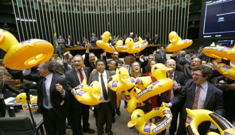 “Ou acaba esse golpe ou esse golpe vai acabar com o Brasil. VA?o acabar o direito dos trabalhadores. O sonho deles A� fazer como nos Estados Unidos, sempre foi. A� pegar um trabalhador que passa fome, pagar uma hora de serviA�o e depois dispensar. A� rasgar o direito dos trabalhadores, A� rasgar a CLT [ConsolidaA�A?o das Leis do Trabalho]”, discursou Jorge Solla (PT-BA). “Esse A� um governo lacaio do grande capital”, reforA�ou Chico Alencar (PSOL-RJ).