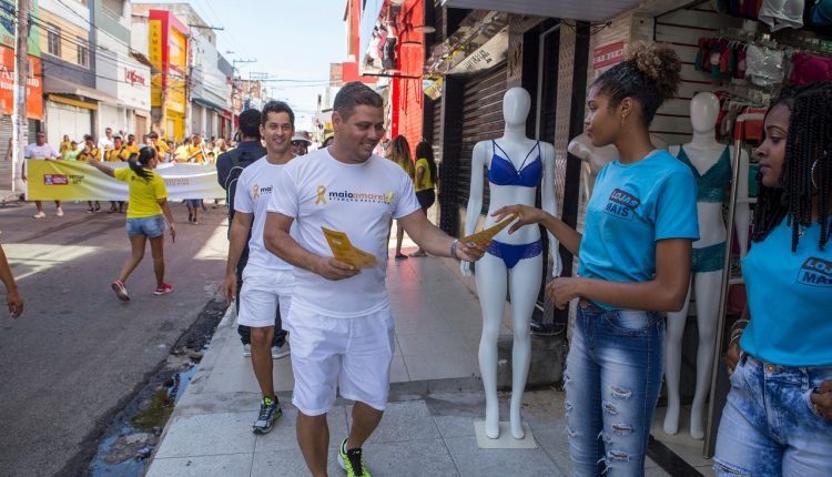 Caminhada pela paz no trA?nsito leva o alerta do Maio Amarelo ao centro de Lauro de Freitas