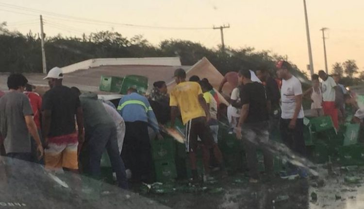 Carga de cerveja é saqueada após caminhão tombar na BR-116