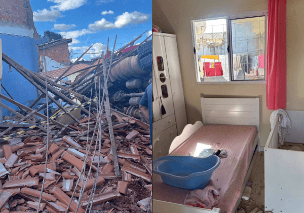 Entre os atingidos estavam um bebê e uma criança, sobrinho do proprietário de uma das casas. Com o impacto, parte do teto desabou sobre as vítimas, mas a estrutura de madeira ajudou a amortecer a queda, resultando em ferimentos leves. Ambos foram socorridos e encaminhados para uma unidade de saúde, onde passaram por avaliação médica.