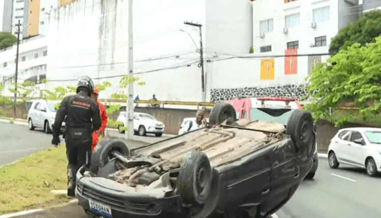 Carro capota na descida do Horto Florestal em Salvador após motorista perder controle