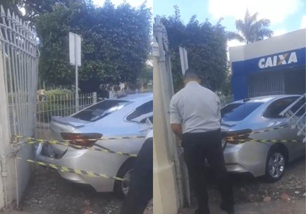 Com o impacto, o portão da agência foi derrubado e parte do muro ficou danificada. O condutor permaneceu no local e organiza a retirada do veículo por meios próprios.