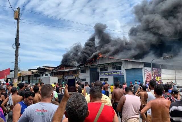 De acordo com testemunhas, as chamas começaram por volta de 9h em uma loja de descartáveis e se alastrado para uma loteria, um mercadinho e um depósito de bebidas.