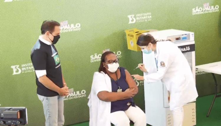Após a Agência Nacional de Vigilância Sanitária (Anvisa) aprovar o uso emergencial da CoronaVac, o governador de São Paulo, João Doria, “correu” para vacinar a primeira pessoa contra a Covid-19 no Brasil. Ele participou de um evento, transmitido pela TV, onde Monica Calazans, de 54 anos, enfermeira no Instituto Emílio Ribas, em São Paulo, foi imunizada.