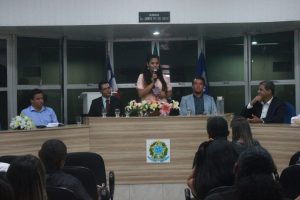 Iniciando os trabalhos legislativos na CA?mara de Vereadores de Lauro de Freitas, a vereadora Luciana (PCdoB) comandou a SessA?o Especial em comemoraA�A?o ao dia do FarmacA?utico, na manhA? desta segunda-feira (6). Durante a abertura dos trabalhos, a edil lembrou do quanto A� necessA?rio uma maior atenA�A?o para a saA?de no municA�pio.