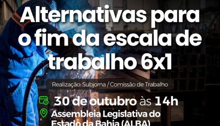 Em um cenário de transformações profundas nas relações laborais, a Comissão de Trabalho da Câmara dos Deputados realiza, no próximo dia 30 de outubro, às 14h, na Assembleia Legislativa da Bahia (ALBA), em Salvador, o seminário “Alternativas para o fim da escala de trabalho 6×1”. A iniciativa busca reunir diferentes setores da sociedade para discutir novos modelos de jornada que conciliem produtividade, competitividade e qualidade de vida.
