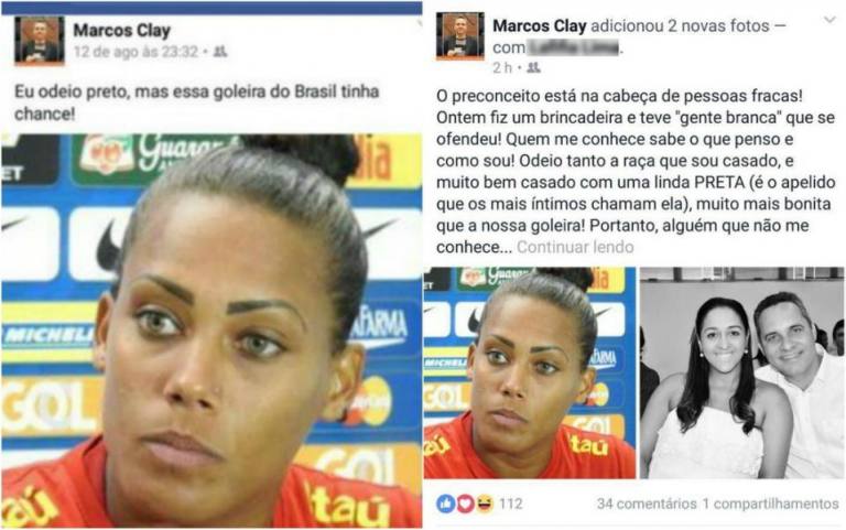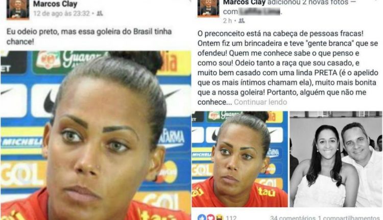 Marcos Clay, membro do Conselho Federal de AdministraA�A?o (CFA), A?rgA?o responsA?vel por regularizar os profissionais de administraA�A?o do Brasil, usou a prA?pria rede social para fazer uma postagem racista contra a goleira da SeleA�A?o Brasileira de futebol feminino, BA?rbara Micheline: “Eu odeio preto, mas essa goleira do Brasil tinha chance”. Momentos depois, o mesmo fez uma postagem dizendo se tratar de uma brincadeira.