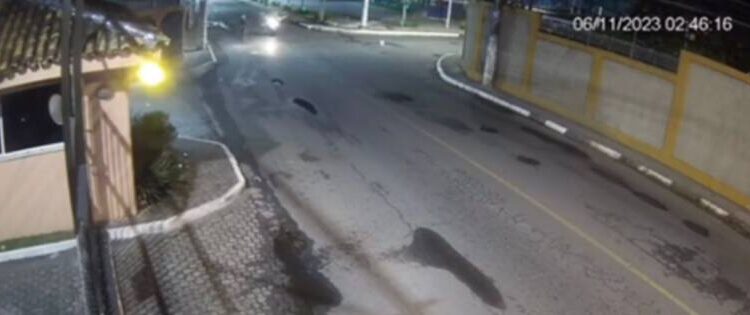 As imagens capturadas pelas câmeras de segurança em um condomínio na Avenida Luís Tarquínio Pontes, em Lauro de Freitas, mostram um momento de violência em que um homem, identificado como Deivid dos Santos, de 32 anos, é perseguido e morto a tiros por dois suspeitos em uma moto.