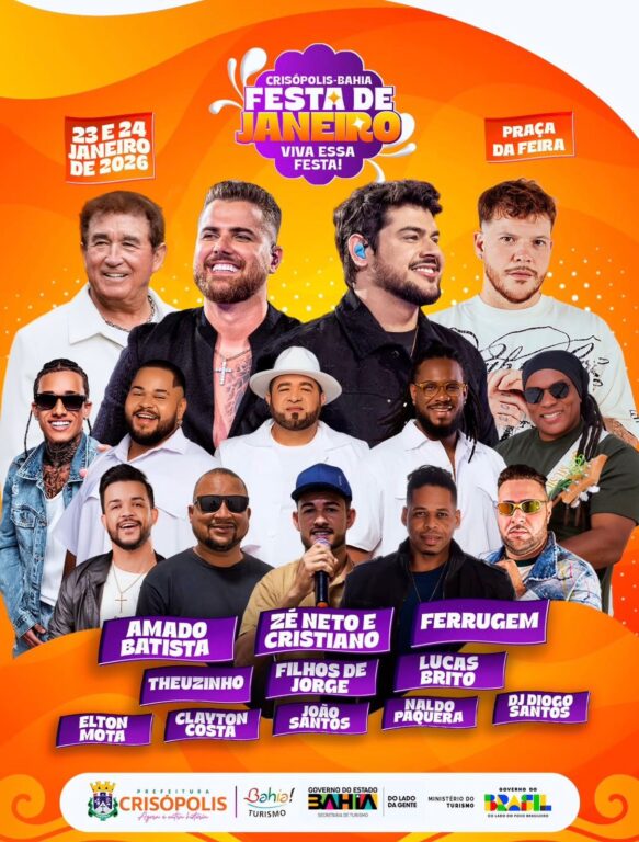 A Prefeitura Municipal de Crisópolis realiza, nos dias 23 e 24 de janeiro, na Praça da Feira, a Festa de Janeiro 2026, com uma programação cuidadosamente elaborada para oferecer ao público atrações de alto nível, reconhecidas nos cenários nacional e regional.