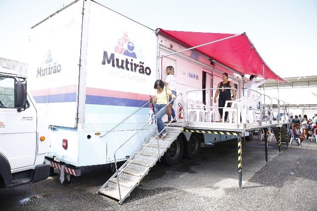 O mutirA?o de cirurgias A� uma aA�A?o do Governo do Bahia, executado pela Secretaria Estadual de SaA?de. O programa jA? atendeu a populaA�A?o de mais de cem municA�pios segundo Aline Peixoto, e a meta A� realizar cerca de 20 mil cirurgias.