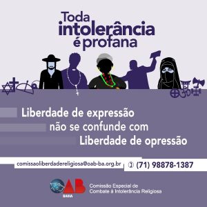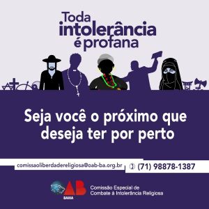 A ComissA?o de Combate A� IntolerA?ncia Religiosa da OAB-BA, criada em 22 de Janeiro de 2016, rejeita a concepA�A?o de que a intolerA?ncia religiosa possua nascedouro espontA?neo no sagrado.
