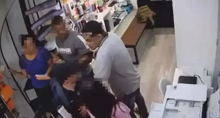 Logo em seguida, o segundo suspeito se juntou ao crime, roubando produtos da loja. Durante o assalto, um dos suspeitos exigiu que uma cliente retirasse a corrente que estava usando no pescoço. Nas imagens, é visível que a mulher ficou nervosa e contou com a ajuda de outro cliente presente no local.