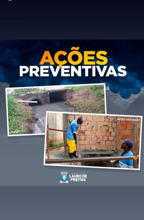 Por fim, ainda no mundo real, é preciso mostrar, de forma prática a diferença entre a Lauro de Freitas real e a do mundo perfeito do governo. Basta comparar as fotos publicadas pela prefeitura, como ações preventivas e as fotos reais publicadas pelas pessoas que sofrem todos os dias com a ineficiência do poder publico e que nesse momento estão com as suas vidas “debaixo dágua”. Veja as imagens e tirem suas próprias conclusões: