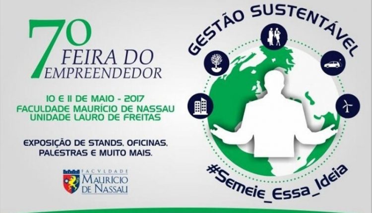 Com o tema a�?GestA?o sustentA?vel: #Semeie_essa_ideiaa�?, estudantes do 7A� semestre de AdministraA�A?o da Faculdade MaurA�cio de Nassau em Lauro de Freitas promovem a 7A? Feira do Empreendedor. O evento serA? realizado entre os dias 10 e 11 de maio, das 17h A�s 22h, no estacionamento da faculdade. A entrada A� gratuita.