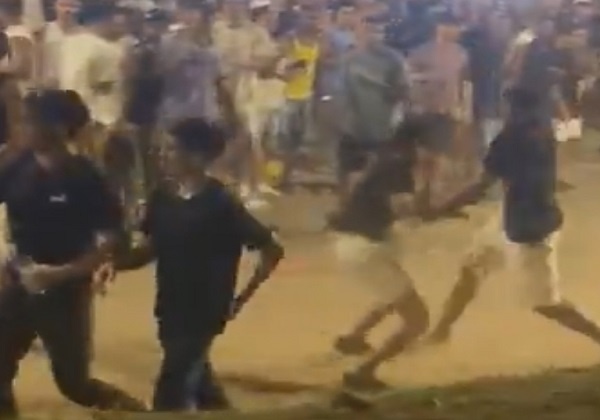 Em vídeo divulgado, é possível ver dois homens se envolvendo em luta corporal, o que gerou tumulto no local. Vale destacar que o evento não contou com medidas de segurança adequadas.