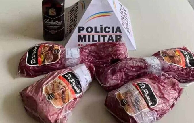Pouco depois, a Polícia Militar compareceu ao local e retirou os pacotes de carne e a garrafa de uísque de posse do rapaz.