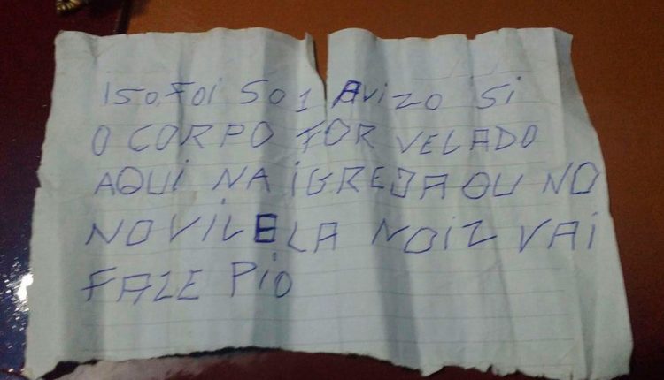 De acordo com a delegada que investiga o crime, o bilhete foi para a famA�lia do morto. O criminoso a�?ordenoua�? que o corpo do suspeito fosse retirado da igreja onde era realizada a cerimA?nia, no bairro TeotA?nio Vilela, para que a�?algo pior nA?o acontecessea�?.