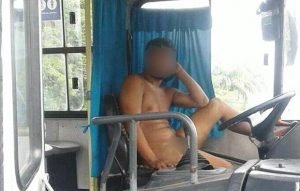 Homem tira a roupa e ‘posa’ nu para foto em A?nibus