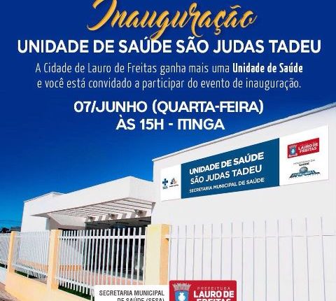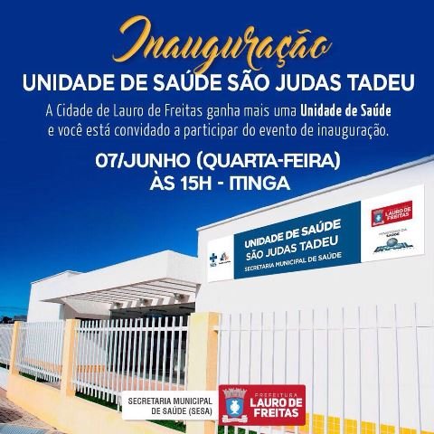 Hoje A?s 15h serA? inaugurada a Unidade de SaA?de SA?o Judas Tadeu, localizada no Loteamento Diamante, Rua do PaA�o s/n, Itinga – Lauro de Freitas