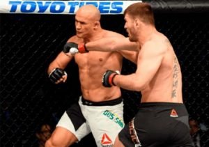 A vitA?ria teve sabor de vinganA�a para Miocic, que havia sido derrotado pelo brasileiro no confronto anterior entre os dois. Na ocasiA?o, ainda em 2014, Cigano vencera por pontos. Desta vez, o croata dominou e acuou o brasileiro desde os primeiros segundos de luta. ApA?s derrubA?-lo, ainda desferiu alguns golpes no rosto de Cigano antes de o A?rbitro finalizar o confronto.
