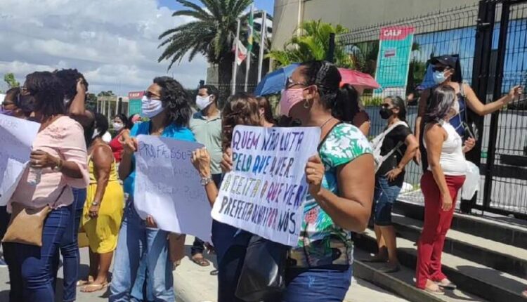 Professores Reda, da rede municipal de ensino de Lauro de Freitas, na região metropolitana de Salvador, realizaram protesto em frente ao centro administrativo da cidade, na manhã desta terça-feira (22). O ato foi organizado após os docentes serem avisados de que 700 profissionais com contratos pelo Reda foram demitidos.