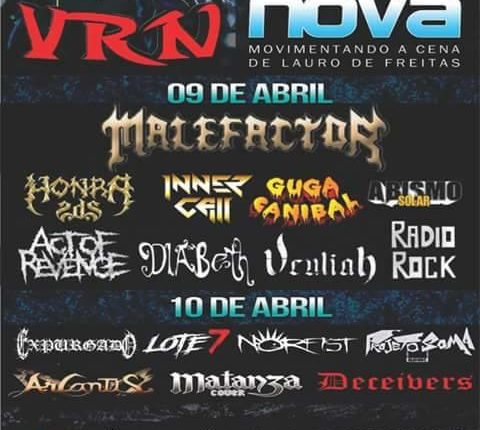 Uma das maiores bandas de death metal melA?dico da Bahia, a Malefactor, participarA? no prA?ximo do 9 de abril, na Concha Acustica Roger Batera, do A?nico festival de Rock’n Roll de Lauro de Freitas, o Vida Rock Nova. O evento, que jA? chega a sua 4A? ediA�A?o, contarA? com a participaA�A?o de mais de 10 outras bandas baianas de Rock e terA? inA�cio A�s 17h.