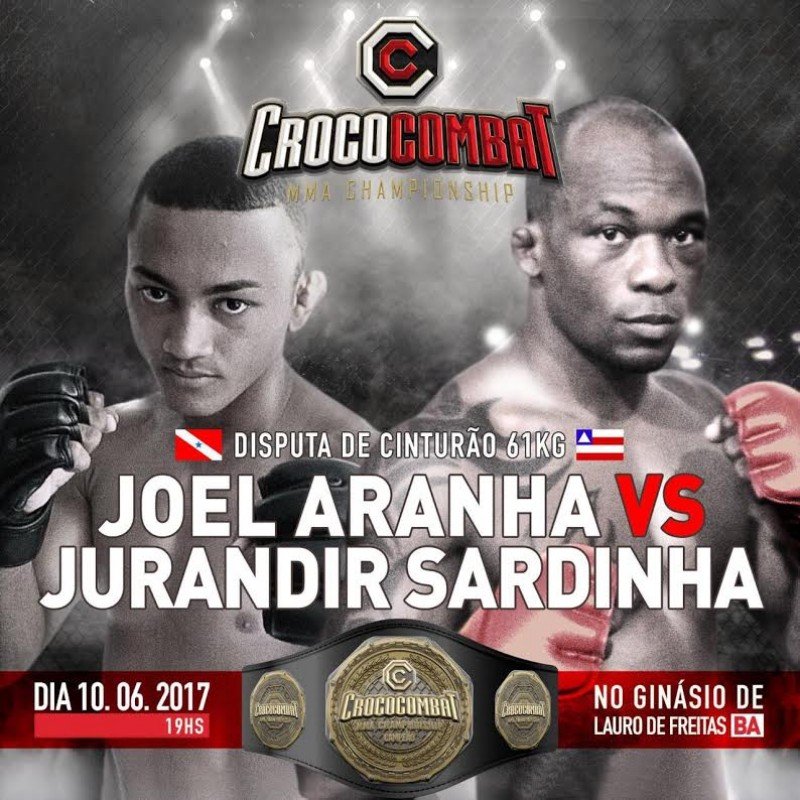 O Crococombat terA? 12 lutas, entre elas uma disputa de CinturA?o com o sergipano Joel Aranha enfrentando o baiano Jurandir Sardinha na categoria 61 kg. Ainda na noite Adson KakA? enfrenta Andrey Moicano na categoria 57 kg, IcA?ro Bad Boy luta contra Gabriel Brayan na categoria 57kg e Amaury Barbosa X Marco Voinho.