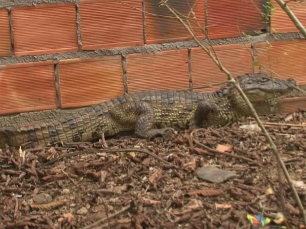 De acordo com Brasilina Carvalho, a dona da casa, o animal mede pouco mais de um metro. O aparecimento do jacarA� no local chamou a atenA�A?o dos moradores da regiA?o, que tomaram o quintal da casa sA? para ver o animal.